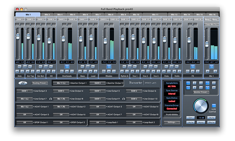 6i6 מגיע עם תוכנת מיקסר מבוסס DSP המאפשר ניתובים שונים ומיקסים בעכבה (לייטנסי) מינימלית.
