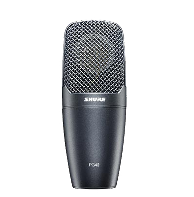 PG 42 של חברת Shure דורש מתח פאנטום להפעלה (48V) והוא בעל היענות תדרים המותאמים במיוחד להבלטת הפרטים הדקים שבקול האנושי. המיקרופון בעל תדרים גבוהים בהירים ותחום תדר נמוך מודגש, הוא מכיל דיאפרגמה רחבה להיענות דינאמית. ל PG 42 יש גם פילטר High-Pass מובנה על מנת לסנן רעשי רקע, הוא עמיד בעוצמת אות נכנס גבוהה ומכיל גם מנחת מובנה של 15dB למצבים אלה. המיקרופון מתחבר באמצעות מחבר XLR.