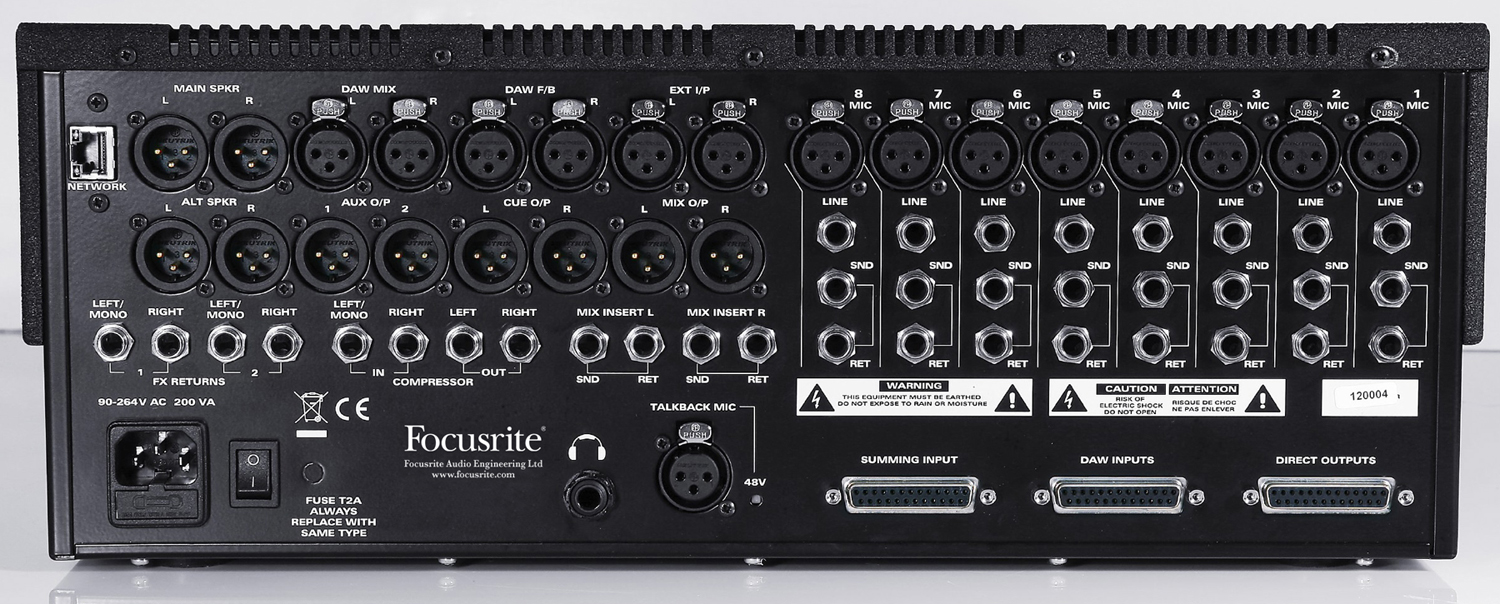 >8 ערוצים אנלוגיים הניתנים למיתוג בין כניסת מיקרופון, ליין או כניסות מתוכנת ה DAW. ועוד8 כניסות אלטרנטיביות עם שליטת רגישות כניסה (gain) וצידוד. 8 כניסות סיכום בצמדים (4 צמדים סטריאופוניים), שליחות FX וחזרות. חזרות מיקס ראשיות ו- DAW סטריאופוניות.